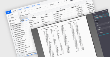 エンドユーザーがアプリケーションに印刷機能を統合することで、スプレッドシートデータを確認、配布、アーカイブ可能